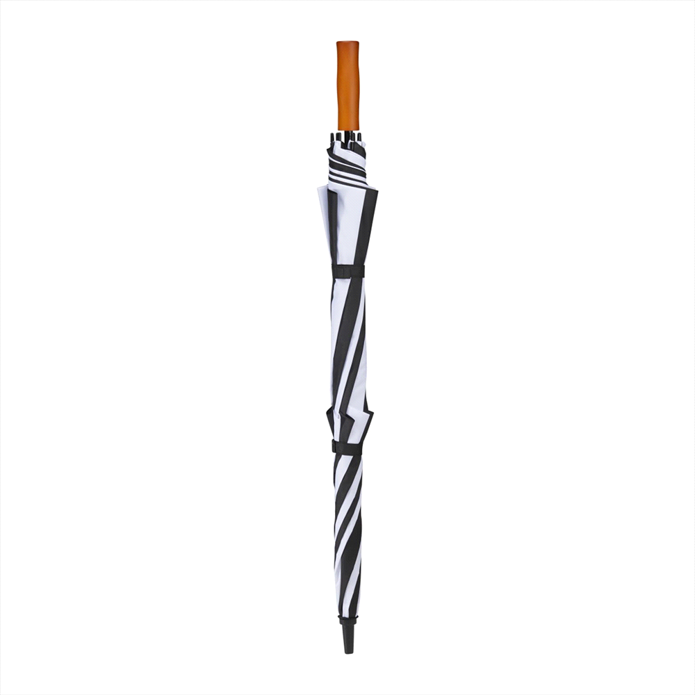 Crafted from eco-friendly materials, this umbrella features a robust full fiberglass construction that makes it lightning resistant and capable of withstanding winds up to 55 km/h. The RPET canopy not only provides ample coverage but also reduces environmental impact through recycled materials. Designed for durability and style, it includes an FSC wood handle for a comfortable grip and a touch of elegance.